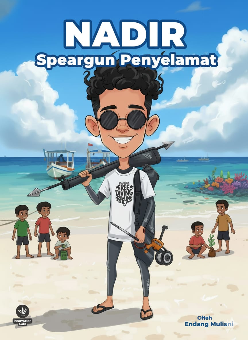 E-book kedua, “NADIR, Speargun Penyelamat”, diangkat dari petualangan seorang bocah bernama Nadir dan teman-temannya di Bulukumba. Nadir mengubah hobinya menjadi aksi nyata penyelamatan lingkungan: menggunakan tombak selamnya bukan untuk memburu ikan, melainkan untuk menombak sampah plastik dan menanam bibit terumbu karang di bawah laut Bira yang indah.