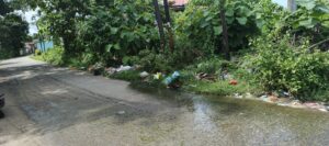 Kondisi lingkungan Jalan Damai semakin parah dengan sampah-sampah yang menumpuk di pinggir jalan. Ada limbah rumah tangga, plastik bekas, hingga material bangunan yang berserakan tanpa pengelolaan.