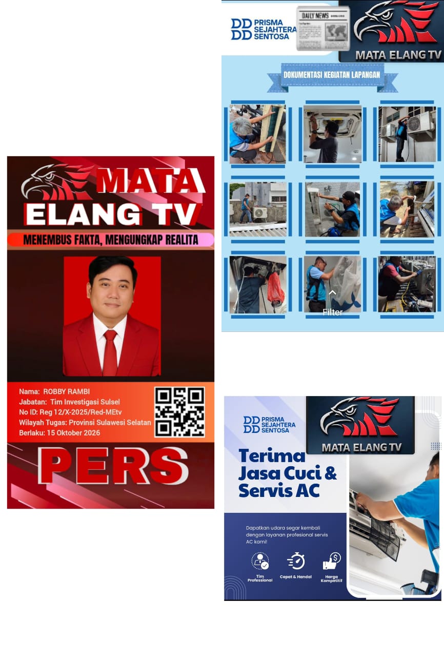 Makassar, Mataelangtv.com prisma Sejahtera Sentosa, perusahaan yang bergerak di bidang jasa perawatan dan perbaikan AC, mengumumkan kerjasama strategis dengan Robby Media Online (Mataelangtv) dan Virghi CV Prisma Sejahtera Jasa AC. Kolaborasi ini bertujuan untuk memperluas jangkauan pemasaran dan meningkatkan efektivitas penawaran jasa ke berbagai sektor, termasuk pemerintah, rumah sakit, sekolah, penginapan, dan hotel di wilayah Tana Toraja dan sekitarnya (02/11/2025).