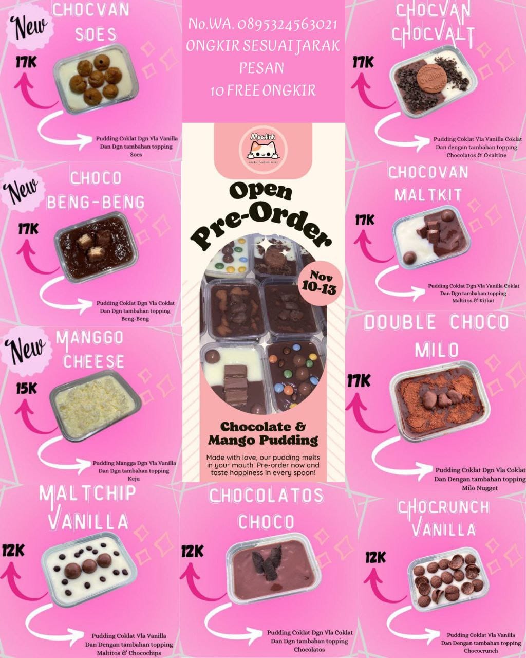 “Untuk mempromosikan bisnisnya, Cralissa menawarkan free ongkir untuk pembelian 10 pcs pudding. Alamatnya terletak di Perumahan Taman Toraja Danau Kerinci No. 25,” ujar Cralissa.